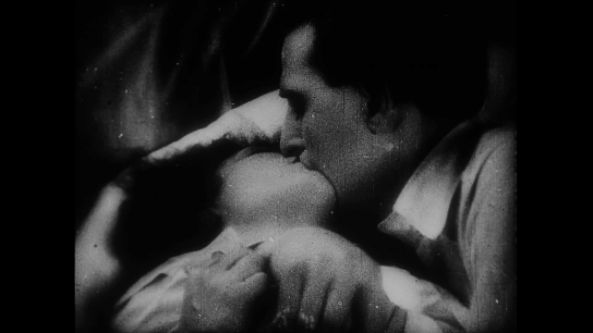 Ela desperta do sonho erótico (não sabemos bem se está dormindo ou acordada – sabemos que sonha) e sai para atender o telefone em plena madrugada. George está desperto na sala. Ela inicialmente resiste às investidas dele, mas quando ele lhe beija o dedo, tudo começa a desfazer-se. Nunca saberemos se é gesto do cineasta ou defeito de conservação da cópia, mas o fato material é que o beijo no dedo e a reação de Andrea acontecem embebidos numa luz estourada, branquíssima, em que os contornos dos corpos já se desdesenharam. Os personagens estão como que desfeitos numa matéria vibrátil, onde já não há mais linhas precisas a delimitar o que é corpo e o que é o ar que ambos respiram. Quando o desejo dela acende, o cinema se desfigura.